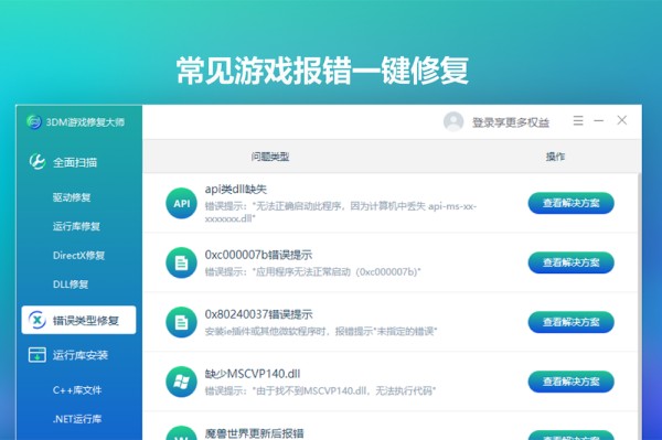 2、异常DLL修复:修复丢失或异常的DLL文件和组件,解决版本不对导致的错误,系统更健康。