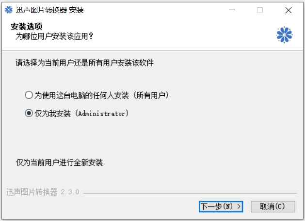 1、下载迅声图片转换器软件安装包,双击打开安装导向,点击下一步。
