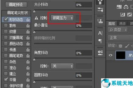 勾选【形状动态】,并将里面的【控制】设置为【钢笔压力】。