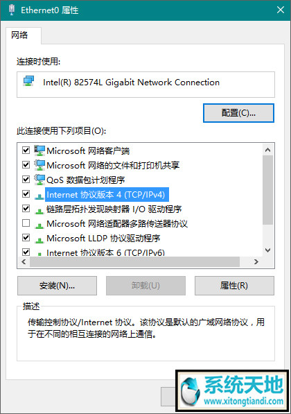 4、在打开的网络连接属性对话框中选择“Internet 协议版本 4”;