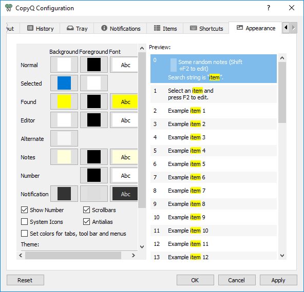 CopyQ被设置为默认存储200个条目,最好的部分是你可以在设置中改变它。用户可以通过使用诸如换行长文本,Vi Style命令和总是在顶部之类的功能来格式化文本。如前所述,您可以添加选项卡式树并隐藏某些项目。也可以禁用托盘图标,以便使用快捷方式访问该程序。此外,还可以自定义程序快捷方式并更改颜色和字体。另外,您还可以更改颜色和字体。