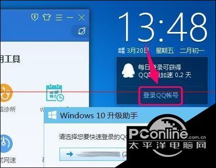 6、再一次启用Win10升级,现在点击[登录QQ帐号]就有反应了,然后你可以从列表里选择,使用当前QQ或者其他QQ帐号登录;