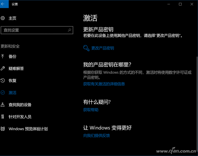依次进入“设置-更新和安全-激活”选项,看到右侧“更改产品密钥”的的选项没,点它!