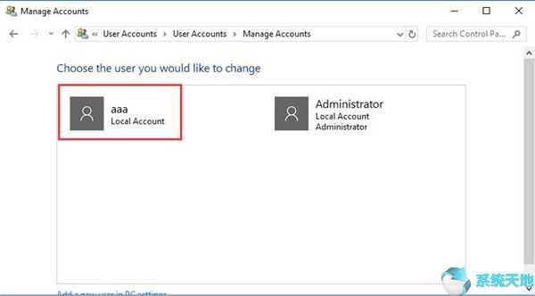 3.选择您的本地帐户。这里的本地帐户名为aaa。