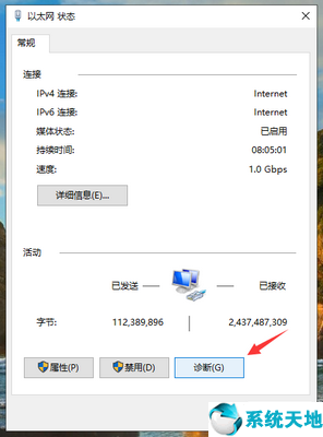 4、在打开的状态窗口中点击“诊断”。