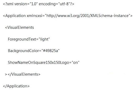 ShowNameOnSquare150x150Logo代码表示:是否显示磁贴名称。