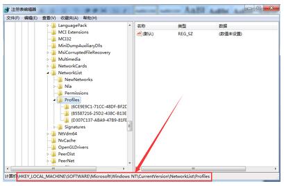 第二步、在【注册表编辑器】界面中,依次打开:【Hkey_LOCAL_MACHINE】——【SOFTWARE】——【Microsoft】——【Windows NT】——【CurrentVersion】——【NetworkList】——【Profiles】。